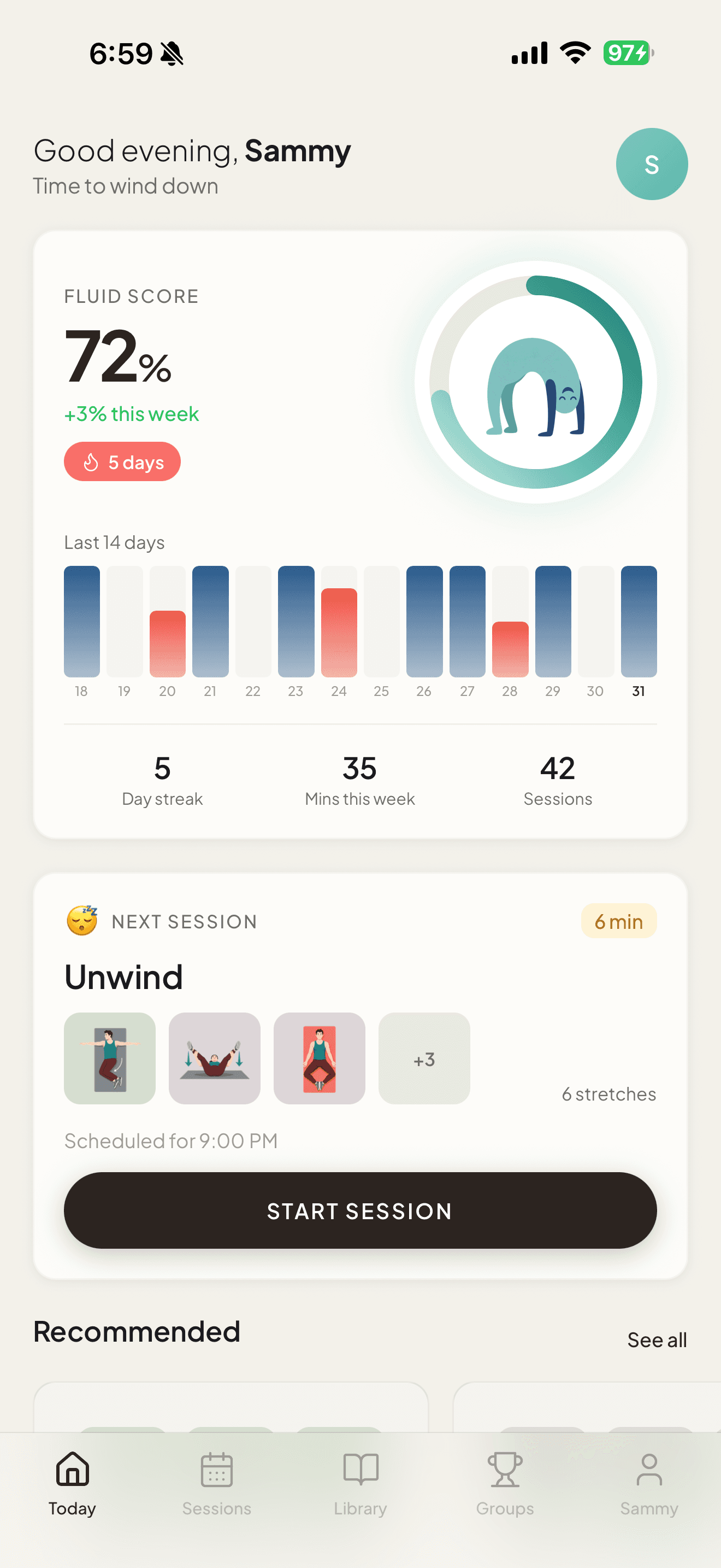 No longer a chore, Fluid makes stretching a daily habit you look forward to. Boost energy, sleep, decrease stress, and pain. Find you flow with Fluid.