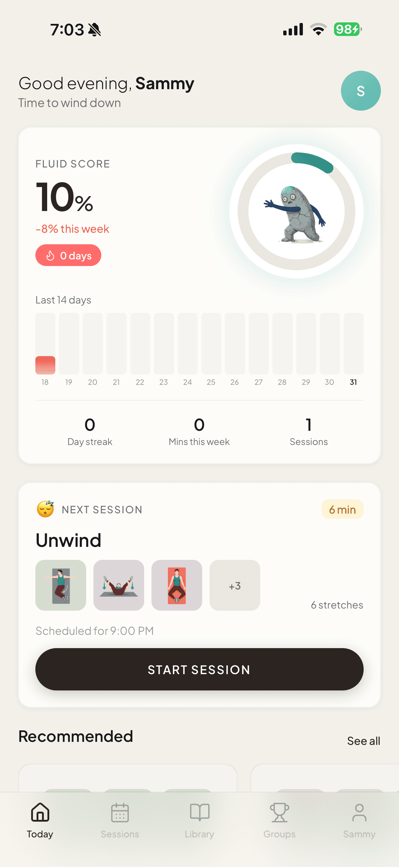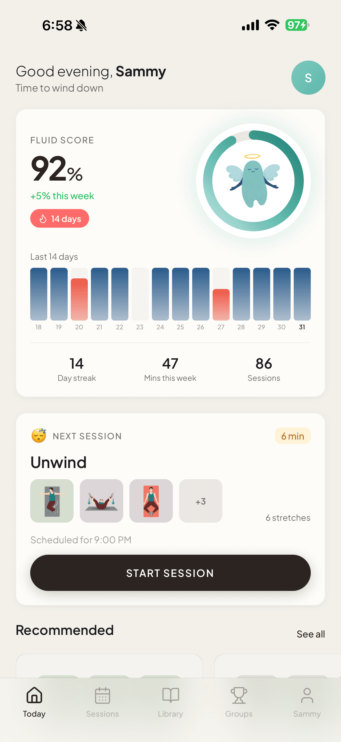 Fluid is a daily stretching app that helps you build a consistent flexibility habit in just 5 minutes a day. Choose from guided routines — morning wake-ups, desk breaks, post-workout recovery, and more — or build your own from 100+ stretches. Track your progress with streaks, milestones, and your personal Fluid Score.